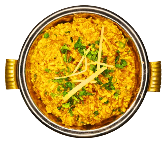Soft paneer cubes simmered in a mildly spiced cream and cashew gravy, delicately flavoured with kasuri methi.