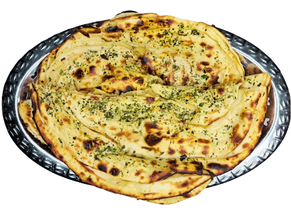 Soft leavened flatbread hand-stretched with garlic, baked in a clay tandoor, lightly charred and brushed with butter.