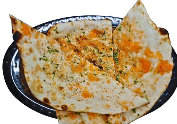 Soft fluffy naan stuffed with melty cheddar cheese, baked in the tandoor until golden and lightly blistered.