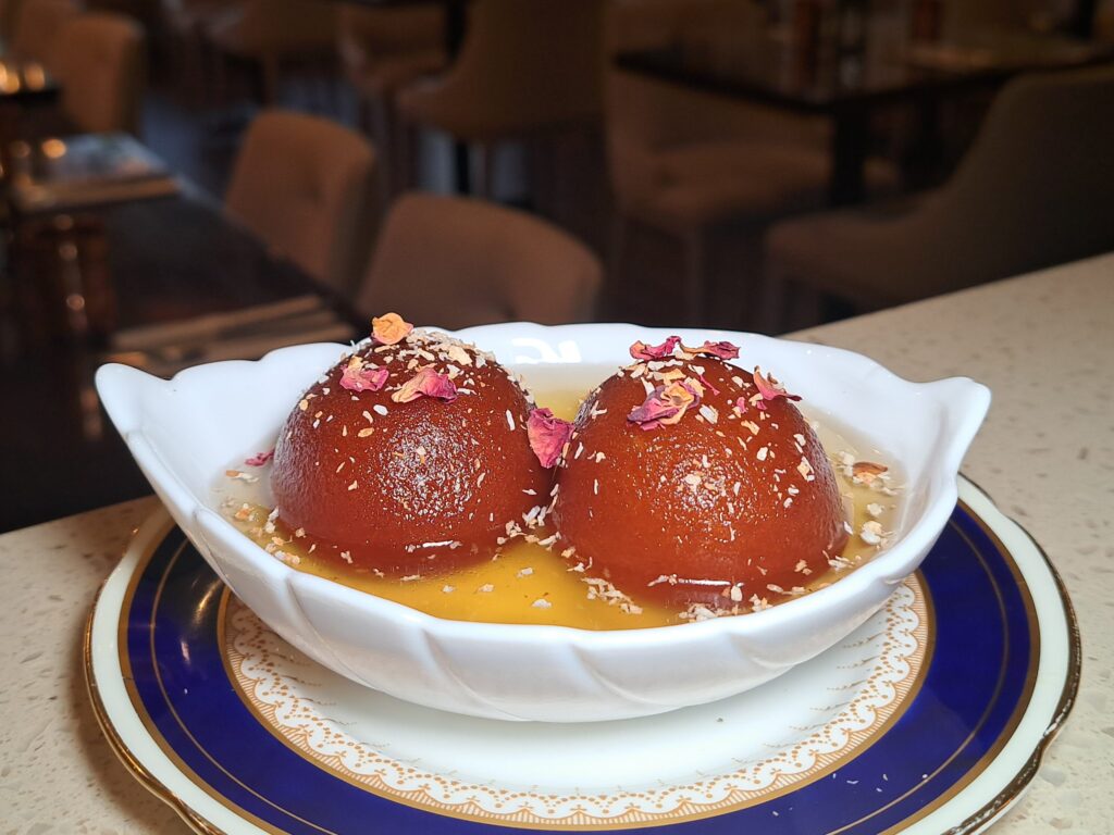 desserts Chef’s Signatures Our chef’s finest creations, inspired by classic Indian flavours. mango coconut rice puddingSlow-cooked rice simmered in creamy coconut milk with jaggery and cardamom, finished with toasted coconut. $5.50 gulab jamunTraditional milk dumplings, golden-fried and steeped in rose and cardamom infused syrup $5.50 rasmalaiSoft paneer patties soaked in chilled saffron-infused milk, delicately flavoured with cardamom and nuts. $6.50 faloodaA decadent layered rose dessert with vermicelli, mango, basil seeds, nuts and a scoop of ice cream. $9.00