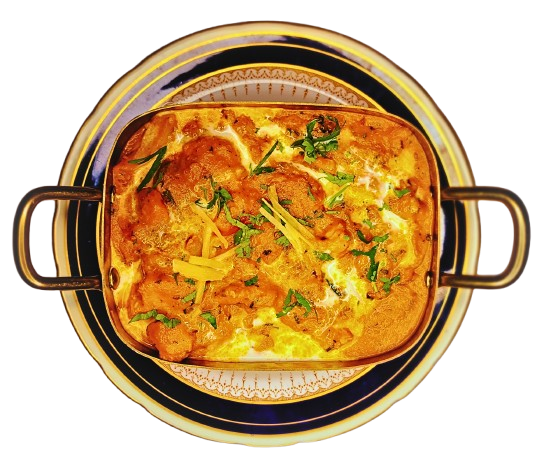 Succulent chicken simmered in a mildly spiced cream and nut gravy, delicately infused with aromatic spices.