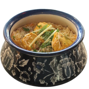 Mixed vegetables simmered in masala & layered with fragrant basmati rice.